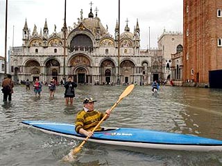 Венеция ушла под воду на 80%. Необычайно высокий морской прилив затопил город в воскресенье, так что большинство достопримечательностей можно осмотреть лишь в болотных сапогах. Так, например, на площади Святого Марка, которая является центральной и самой низкой точкой города, уровень воды составляет минимум 50 см.