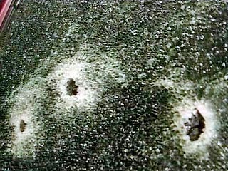 В нескольких кварталах от места преступления сотрудники правоохранительных органов обнаружили сожженную машину "Нива" и автомат, из которого велась стрельба. Сами нападавшие по горячим следам задержаны не были.