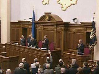 В Киеве в среду на внеочередной сессия Верховной Рады Украины депутаты приняли пакетом все три антикризисных законопроекта. За это проголосовали 402 депутата при необходимом минимуме в 300 голосов. После этого президент Украины Леонид Кучма подписал все три закона прямо в зале заседаний парламента.