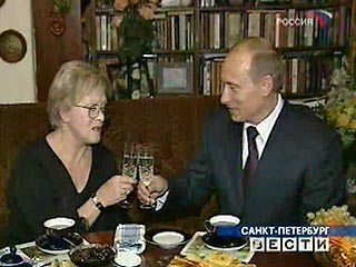 Президент РФ Владимир Путин побывал в среду в гостях у знаменитой актрисы Алисы Фрейндлих, отмечающей в этом году юбилей. Встреча Владимира Путина и Алисы Фрейндлих прошла в теплой обстановке, вопреки волнениям хозяйки, которая в ожидании гостя заметно нервничала, курила и даже пила успокоительные таблетки.
