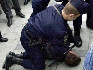 В течение получаса полиции удалось прекратить бесчинства голландских болельщиков.
