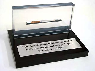 Сигарету потушили в 23:59 9 декабря прошлого года. Ровно за секунду до вступления в силу закона о запрете курения. Владелец бара, где собственно и произошло историческое "тушение окурка", решил, что это неплохой способ заработать. Он выставил окурок на аукцион TradeMe за 7500 долларов, сообщает Reuters. Предпринимателя ничуть не смутил тот факт, что в любом магазине пачка таких сигарет стоит всего 10 долларов.