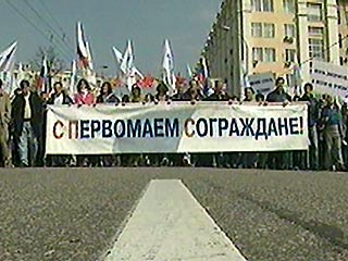 Первомайскую колонну, представленную в основном молодежью, возглавляли "старейшины", несшие растяжку "С Первомаем, сограждане". Здесь можно было увидеть лидера Московской организации СПС Бориса Надеждина и члена Федерального политсовета Ивана Старикова.
