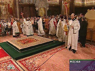 Незадолго до полуночи в главном соборе Русской православной церкви - храме Христа Спасителя - началось праздничное пасхальное богослужение. Его возглавил Патриарх Московский и всея Руси Алексий II.