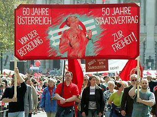 Первого мая на Ратушной площади Вены собралось почти 120 тысяч демонстрантов, сообщает РИА "Новости". Главными выступающими были председатель крупнейшей в стране оппозиционной Социал-демократической партии Австрии Альфред Гузенбауэр и председатель венского отделения этой партии, бургомистр австрийской столицы Михаэль Хойпль.