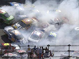 Это случилось на американской трассе Talladega Superspeedway во время очередной гонки серии Наскар. Эта авария стала второй по масштабам в истории этой трассы. В 2003 году в результате столкновений было искорежено 27 автомобилей.