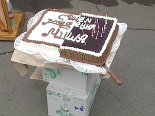 Как передает "Интерфакс", многие из них были одеты в майки с надписью "Ходорковский GO HOMЕ", держали в руках шарики в желто- зеленых корпоративных цветах ЮКОСа. Они устроили фейерверк, выпустили шарики и в течение 15 минут выкрикивали поздравления с днем рождения.