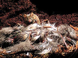 Когда одна мышь нападает на птенца, кровь привлекает других мышей. Мыши начинают вгрызаться в тело птенца, возникает зияющая рана, птенец слабеет и умирает в течение нескольких дней.
