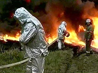 Во вторник поступило сообщение о пожаре в товарном парке нефти, находящемся в 35 км северо-восточнее Нижневартовска. Прибывшие на место пожарные увидели горящий РВС (резервуар нефти вертикальный стальной) объемом 5 тысяч куб м. В этот момент на глазах пожарных произошло попадание молнии в соседний РВС, от чего тот взорвался. Огонь распространился на третий нефтяной резервуар.