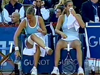 Первыми в воскресенье на публике появились Елена Дементьева и Амели Моресмо. Напряжение в матче двух первых ракеток своих национальных команд было столь велико, что долгое время ни одна из соперниц не могла взять свою подачу. Первой это удалось сделать Дементьевой, которая впоследствии завершила партию в свою пользу - 6:4.