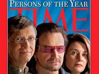 Людей года назвал сегодня популярный журнал TIME. В списке оказались гений компьютерного мира Билл Гейтс, его жена Мелинда и лидер U2 Боно. Эти люди больше всех боролись с такими бедствиями, как малярия в Африке, СПИД и бедностью. За что и получили престижнейший титул люди года.