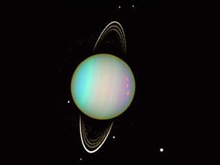 "На снимках с телескопа Hubble видны две, ранее неизвестные, луны и два тусклых кольца, окружающих планету. Они вращаются вокруг Урана на орбите в два раза превышающей радиус основных его колец, на том же расстоянии, что и пылевые кольца", - сообщает институт.