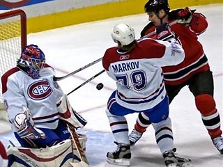 Сразу шесть шайб забросили в защищавшиеся Евгением Набоковым ворота "Сан-Хосе" хоккеисты "Монреаля" во втором периоде матча этих клубов, причём главным героем стал Андрей Марков.