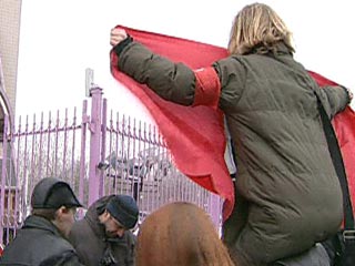 "Нескольким нацболам удалось пробиться в здание военкомата и приковаться там цепями, остальные устроили импровизированный митинг перед входом в военкомат. Участники акции требуют немедленной отставки министра обороны Сергея Иванова и перехода от призывной армии к добровольной", - говорится в пресс-релизе НБП, распространенном в понедельник.