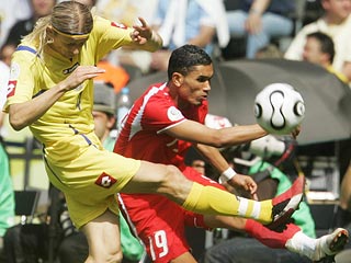 Футболисты сборной Украины благодаря голу Андрея Шевченко победили на берлинском стадионе "Олимпиаштадион" команду Туниса со счетом 1:0 и заняли второе место в группе Н, дающее право выступить на следующей стадии первенства планеты.