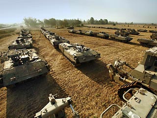 Саперы Армии обороны Израиля в понедельник подорвали туннель в секторе Газа, через который палестинские боевики накануне проникли на израильскую территорию, где убили двоих израильских солдат и похитили третьего. Сейчас армия Израиля наращивает силы в районе сектора Газа - перебрасываются десятки единиц бронетехники, подтягиваются спецподразделения. Как видно из кадров телетрансляций, по периметру сектора на сотни метров уже выстроились колонны бронемашин и танков.