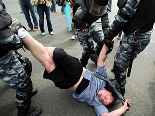Когда толпа подошла к Невскому, несколько человек в штатском набросились на лидера АКМ Сергея Удальцова и лидера "Левого фронта" Илью Пономарева. К ним тут же подоспели омоновцы – Пономарева толпе удалось отбить, а Удальцова и защищавших его АКМовцев уволокли в милицейский автобус. Затем толпа вышла на тротуар и пошла, сопровождаемая ОМОНом, к месту митинга у ТЮЗа. Когда толпа проходила мимо "Макдоналдса", омоновцы заметно заволновались, но напрасно: отечественные антиглобалисты продемонстрировали абсолютное равнодушие к этому символу мирового закулисья.