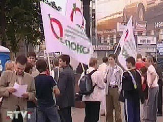 В акции, по оценке правоохранительных органов, принимают участие около 30 человек. В руках они держат флаги "Объединенного гражданского фронта", "Союза правых сил", "Яблока", "Зеленой России", передает "Интерфакс".