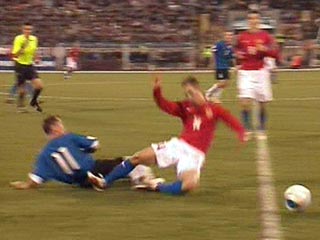 На последней минуте матча эстонцы остались вдесятером после того, как был удален защитник Райо Пийроя. И тут же второй мяч россиян ворота Эстонии мощным ударом из-за пределов штрафной забил Сычев, не допустив повторения сценария прошлой игры с командой Израиля, когда под занавес встречи победа была упущена.