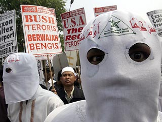 Исламисты в Индонезии потребовали, чтобы Буш к ним не приезжал, поскольку он "террорист с жестоким лицом"