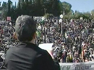 Проникший на митинг представитель ультраортодоксального сообщества попытался спровоцировать потасовку, но он тут же был задержан охраной и эвакуирован.