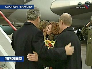 После беседы Владимир Путин с супругой проводили чету Буш до трапа самолета, где они тепло попрощались.