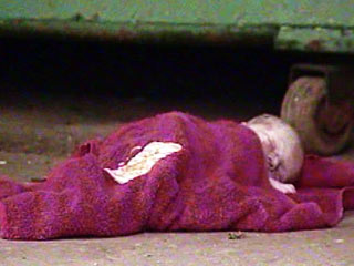Как установило следствие, Алимов выхватил ребенка из коляски, "умышленно разбил одно стекло в оконной раме рукой, после чего выбросил младенца из окна квартиры первого этажа на улицу, разбив им второе стекло".