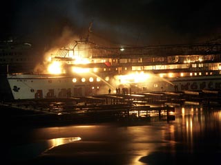 Он добавил, что тушение пожара осложняется тем, что корабельные помещения обиты деревом, пластиком и другими горючими материалами, а также захламлены. Борьба с огнем продолжается уже более 16 часов.