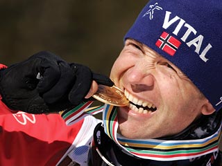 Бьорндален - "золотой", а Гусева - "бронзовая"