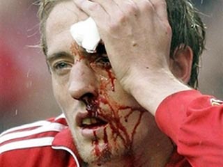 В очередном матче английской Премьр-лиги между "Ливерпулем" и “Шеффилд Юнайтед” нападающему хозяев поля Питеру Краучу сломали нос.