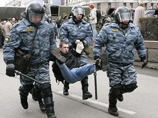 Адвокат отметил, что "вчера было незаконно задержано очень много граждан". "Многие и них говорили, что просто шли по улице, к ним подходили сотрудники милиции в штатском, в форме, предлагали пройти в отделение или насильно хватали, отводили в автобусы и везли в милицию", - добавил Марков.