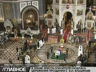 В главном соборе России - храме Христа Спасителя в Москве - идет прощание со скончавшимся в понедельник первым президентом страны Борисом Ельциным, который одним из первых в 1991 году поддержал инициативу воссоздания этого храма на Волхонке, считая, что возрожденный Храм поможет легче находить пути к общественному согласию.