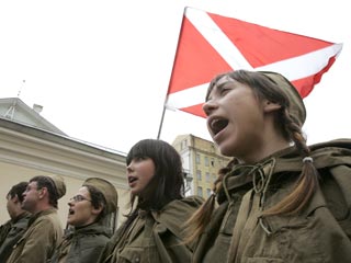 Активисты молодежных движений продолжают пикетировать посольство Эстонии. После девяти утра молодые люди свернули десяток палаток, разбитых в Калашном переулке почти напротив дипмиссии, и приступили к "активной фазе" своей акции - развернули фотоплакат с изображением "Бронзового солдата" и лозунги с нелицеприятными оценками политики властей Эстонии.