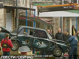 Вскрыв с помощью робота-сапера, которым дистанционно управляли из штабного автомобиля, багажник "семерки", взрывотехники обнаружили, среди прочего, два компьютерных системных блока. При просмотре рентгеном одного из них выяснилось, что внутри находится металлическая коробка из-под водки "Русский стандарт" с металлическими шариками, пакет с радиотелефоном, детонатором и укороченным автоматом Калашникова.