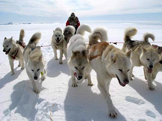 Экспедиции Федора Конюхова по Гренландии до финиша на западном побережье острова осталось пять дней хода. С высоты 2 тыс метров над уровнем моря две собачьи упряжки, ведомые Федором и его другом, местным охотником-инуитом Хансом Аронсеном, спускаются к поселку Илулиссат.