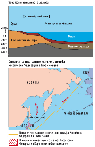 ____________________________ 1 Шельф — часть подводной окраины материка, имеющая общее геологическое строение с примыкающей к ней сушей. В пределах шельфа ведется разработка месторождений нефти и газа, исследуется возможность добычи других полезных ископаемых, находятся рыбопромысловые зоны.