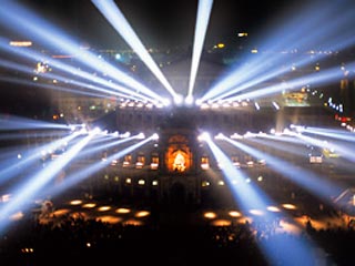 Нынешнее представление, символизировавшее, по замыслу автора, символическое слияние Востока и Запада, мастер света поэтически назвал "Красные цветы Бодлера". В нем была задействована игра свыше 170 прожекторов. Уникальный спектакль и концерт собрали около тысячи видных представителей берлинской общественности, деятелей культуры, шоу-бизнеса, дизайнеров.