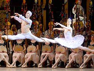 В постановке Петипа все было сработано безупречно: и музыка, и живописные декорации, выполненные в имперском стиле со знаменитой сценой "оживленного сада" (газоны, арки, фонтаны), и великолепный кордебалет, и блистательные солисты. Главную женскую партию исполняла первая балерина Большого - Светлана Захарова, а ее партнером был Денис Матвиенко.