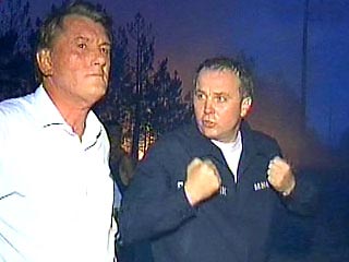 Вечером 21 августа глава государства находился в оперативном штабе по ликвидации лесных пожаров в Херсоне, и лично принял на себя руководство пожарно-спасательными работами, передает NEWSru.Ua. Мир облетели распространенные агентствами кадры: Ющенко с лопатой тушит лес, Ющенко в отблесках пламени, Ющенко толкает пожарную машину.