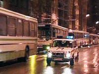 REN-TV: По решению оперативного штаба операции по освобождению заложников Григорий Явлинский начал переговоры с террористами. Переговорщики просят террористов, чтобы они первоначально отпустили детей и иностранных граждан. По сведениям штаба, там около 30 детей. В здании дома культуры есть только питьевая вода и шоколад.
