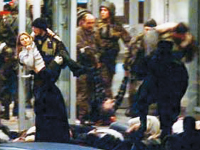 16.07 Иосиф Кобзон и Ирина Хакамада выходят из здания. С депутатами разговаривал представитель террористов, назвавшийся Абу Бакаром. Он был без маски. Обещание отпустить 40 заложников террористы не исполняют.