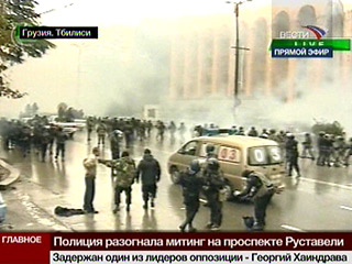 Спецназ в это время вытеснял недовольных с центрального проспекта Руставели. По сообщению РИА "Новости", у стен церкви Кашвети напротив здания парламента вспыхнули столкновения между спецназовцами и группой сторонников оппозиции. Выходившие из церкви священники призывали прекратить кровопролитие, а пострадавшие затем укрылись в церкви.