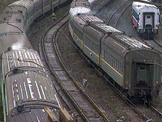 "В 5:05 мск при перегоне с одной железнодорожной ветки на другую двумя осями сошел с рельсов предпоследний вагон пассажирского поезда, пострадавших нет", - сказал дежурный.