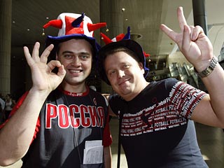 Канун поединка, от которого во многом зависит, попадет ли дружина Гуса Хидинка на первенство континента, сотни российских фанов провели в прибрежных барах и ресторанах, выпивая и закусывая за предстоящую - в этом они не сомневаются - победу любимой команды.