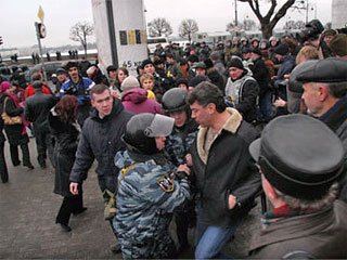 Борис Немцов описал, как его задерживали, в своем блоге. "Такого количества ОМОНа я не видел никогда в своей жизни. Вначале забрали тех, кто шел по улице Маяковского, включая Максима Резника, Леонида Гозмана и Ольгу Курносову, а нас с Белых взяли в районе Дворцовой площади. Я мирно беседовал с интеллигентными пожилыми женщинами. Обсуждали, почему при Путине так растут цены на продукты и тарифы на коммунальные услуги. Через 5 минут после начала дискуссии на меня набросились 15 хулиганов, одетых в форму ОМОНа, и затолкали в машину. Глаза стеклянные, выражение лиц – невменяемое. Не люди, а звери. Отвезли в 16 отделение милиции, там милиционеры были мирные, брали автографы и фотографировались со мной. Я написал объяснение, через полтора часа отпустили. Думаю, что большинство сотрудников отделения теперь будут теперь голосовать за СПС. Не за эту же трусливую и убогую власть голосовать", - пишет Немцов.