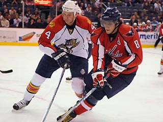 "Флорида" на своем льду проиграла "Вашингтону" со счетом 1:2, за который решающую шайбу забросил на 45-й минуте Александр Овечкин. Кстати, и первая шайба в ворота Томаша Вокоуна влетела при участии российского нападающего (результативный пас), в итоге признанного первой звездой вечера.