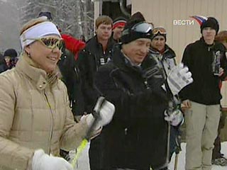 Президент вместе с детьми из Краснополянской горнолыжной школы и серебряным призером Олимпийских игр в Лиллехаммере Светланой Гладышевой освоил несколько горнолыжных спусков недавно открывшегося курорта.