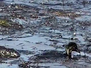 По ее словам, нефтяная пленка, которая покрывает реку, накапливается возле боновых заграждений, но потом "струей почти в половину реки вливается в море".