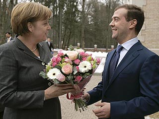 "Мы очень ценим, что вы приехали к нам, и рассматриваем этот визит как продолжение того стратегического сотрудничества, партнерства, которое традиционно существует между Россией и Федеративной республикой Германии", - сказал Медведев на встрече с Меркель в замке "Майн Дорф" в Подмосковье (представительская резиденция Управления делами президента РФ).