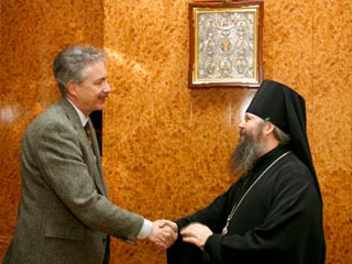 Архимандрит Закхей "сердечно поблагодарил его за сотрудничество между представительством ПЦА и посольством США в России во время его дипломатического служения", сообщает ИТАР-ТАСС.